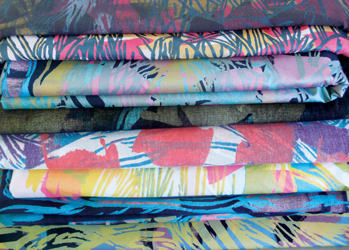 (Selection) multi color prints, 4 way repeat on linen fabrics in different sizes and color combinations