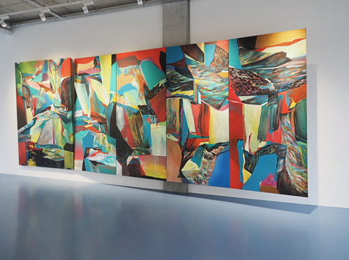 From a series of 8 works / Aus einer Serie von 8 Arbeiten (I – VIII), Acrylic, ink, spray paint, gouache on canvas / Acryl, Tusche, Sprühfarbe, Gouache auf Leinwand, Each / Je 6×140 x 290 cm & 2×200 x 290 cm, In total / Gesamt 480×290 cm & 760×290 cm, Ivonne Dippmann, Berlin 2016