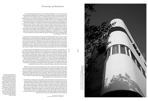 Double spread, text by Roy Brand — Growing up Bauhaus, © photography Michelle Medenblik, Tel Aviv 2018