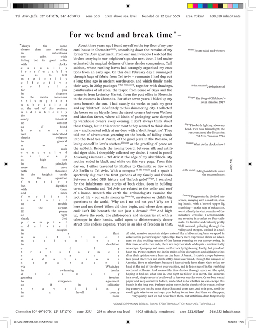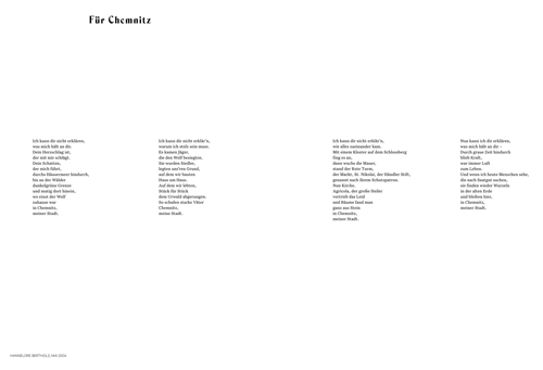 Für Chemnitz — a poem by Hannelore Berthold / For we bend and break time — an introduction by Ivonne Dippmann (1/4 pages, Tel Aviv part)