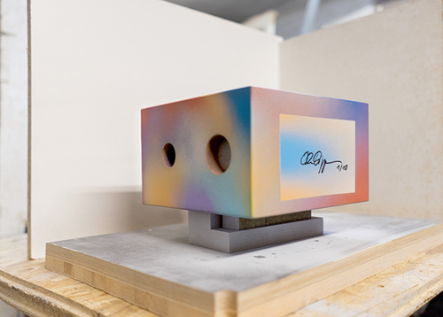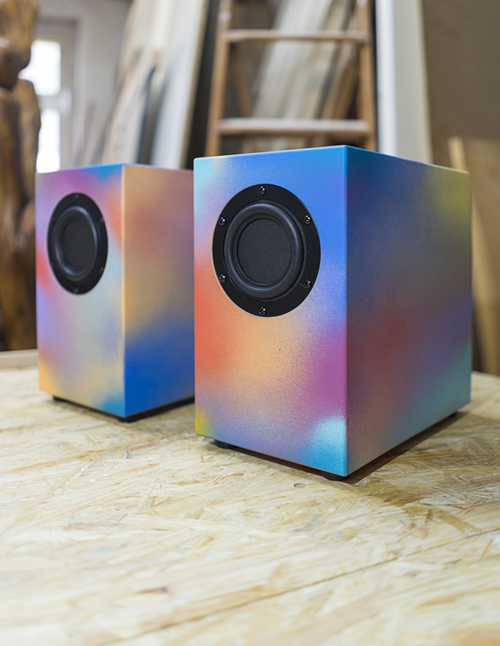 As a hand-made homage to a particularly fine sound, this unique art edition ‚Tondichter – poetry of sound‘ was created as part of a collaboration between Hans Ohse and Ivonne Dippmann. As a music lover, carpenter and sculptor, Ohse moves playfully and in nuances between sculptural objects, the woods of the world and meanwhile, within sophisticated and point-precise sound systems. What started as a hobby has been cleverly crafted over the past years and refined in miniature — small, handy broadband bass reflex speakers, which in size and shape fit easily into our bookshelves without losing the slightest touch of liveliness and presence in sound volume.